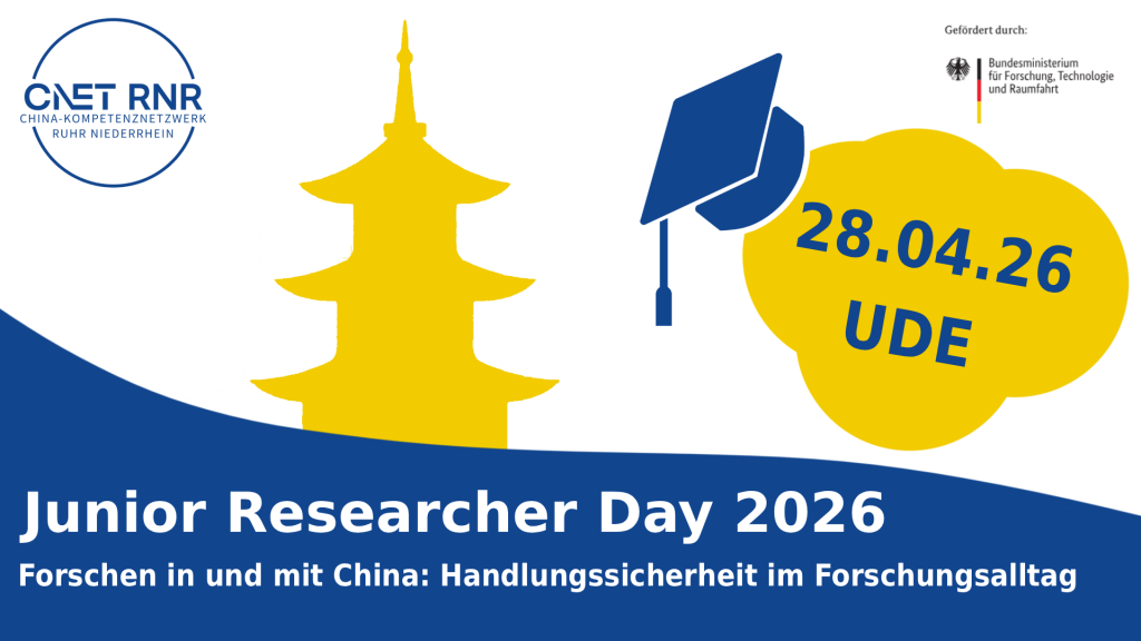 Don’t have any experience with research activities in China yet? Whether you’re preparing for a research stay in the People’s Republic of China, planning a collaborative project with Chinese partners, or working with Chinese colleagues in an international team, the Junior Researcher Day offers practical support and in-depth information: Experts from the UA Ruhr universities, the DAAD, and the Ministry of the Interior of North Rhine-Westphalia will help you get your bearings and make informed decisions. The one-day event will take place in person on April 28, 2026, at the UDE in Duisburg.